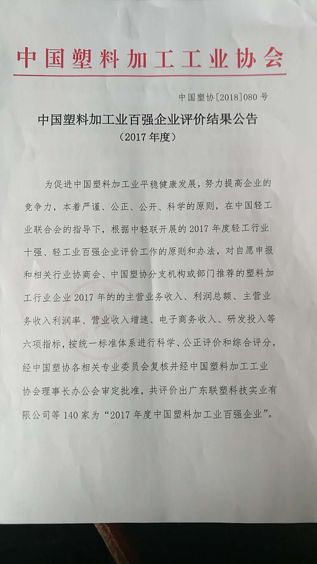 近日,經農膜專委會推薦,中國塑料加工工業協會評選,科倫股份被評為“中國塑料加工業百強企業”。這是社會各界和廣大消費者對科倫股份的肯定和鞭策,科倫股份將一如既往,以高品質的產品和服務回饋廣大客戶和消費者。